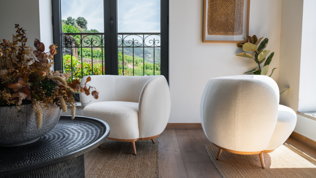 A similar philosophy can be seen in the Pipo Lounge Chair, a furniture design piece inspired by Oporto’s internationally known Porto wine. This cultural reference informs the chair’s voluminous and protective shape, resulting in a design that feels enveloping yet elegant. Upholstered in velvet and handcrafted in ash wood, the Pipo Lounge Chair combines craftsmanship with conceptual depth, translating tradition into a contemporary form.