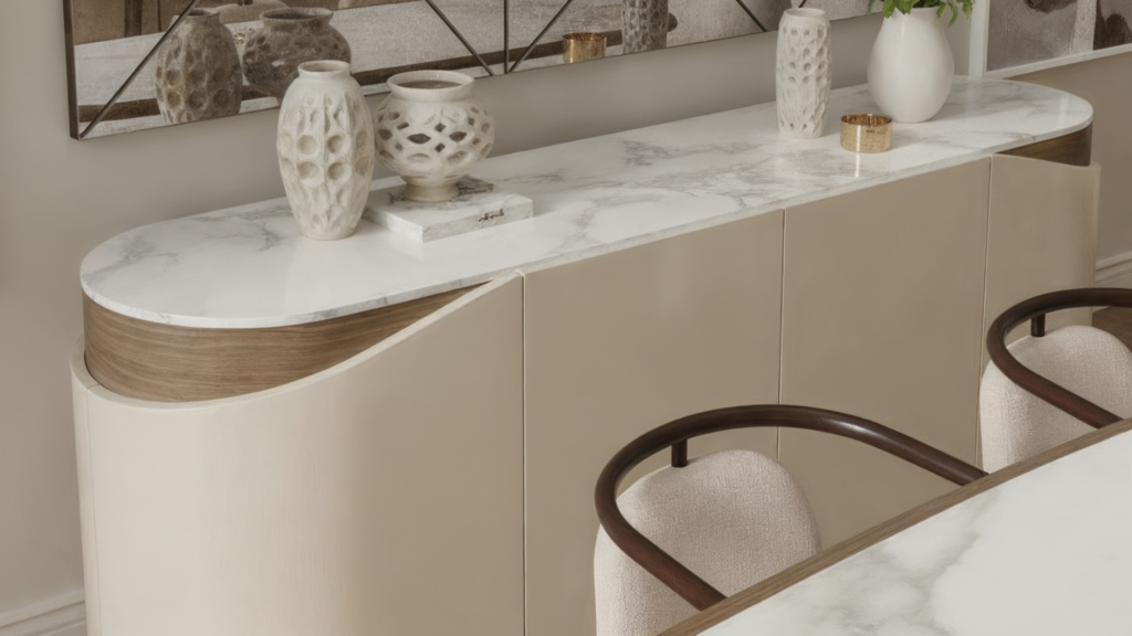 For Curie, the Bellagio sideboard embodies the precision and strength of a woman whose discoveries reshaped science, while also reflecting the clarity and rigor of scientific thought. Not to suggest she needed a beautiful statement piece to display her awards, but rather a purposeful surface worthy of the brilliance behind them.