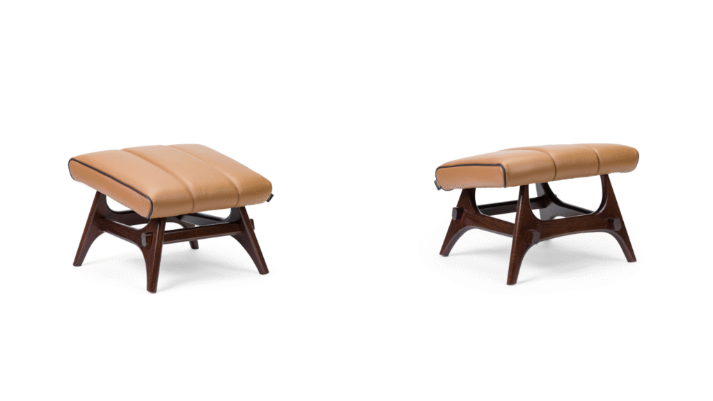 To complete the ergonomic experience, the Jackob Footrest acts as the necessary conclusion to the chair’s lines. It mirrors the angularity and floating base of the armchair, ensuring visual continuity while providing essential support. Far from being a mere accessory, the footrest transforms the seating experience, allowing the body to fully recline and distributing weight evenly for a moment of absolute weightlessness.