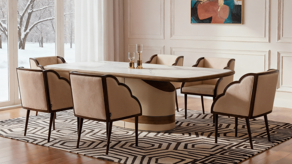 Scaling up this ambition, the Bellagio Dining Table XL was introduced for spaces that demand grandeur. This is not simply a larger version; it is a monumental expansion of the concept. Engineered to accommodate the abundance of the season and large-scale gatherings, the XL iteration features a dual-column structure that commands the room. It transforms the dining area into a banquet hall, providing an expansive surface that celebrates the art of hosting without compromising on the collection’s signature architectural elegance.