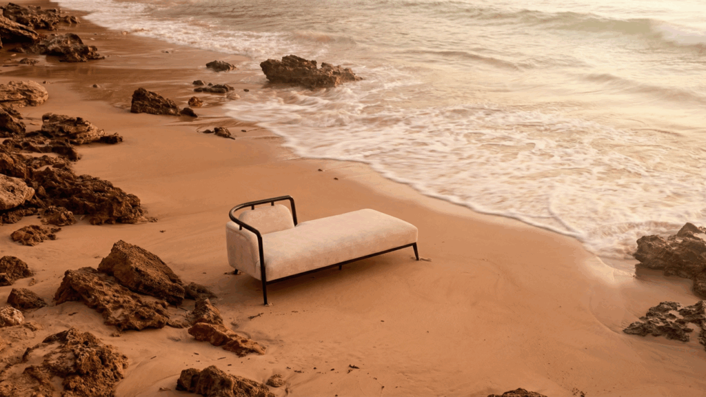 With its bold silhouette and solid ash base, it feels complete unto itself. It doesn’t rely on a sofa or a side table to make sense. Whether floating on a platform or sitting in a busy hotel lobby, the Samara creates a contained circle of calm. It is a sanctuary you can place anywhere, offering quiet sophistication that wraps around you, regardless of the chaos outside-the ultimate expression of Design Without Boundaries
