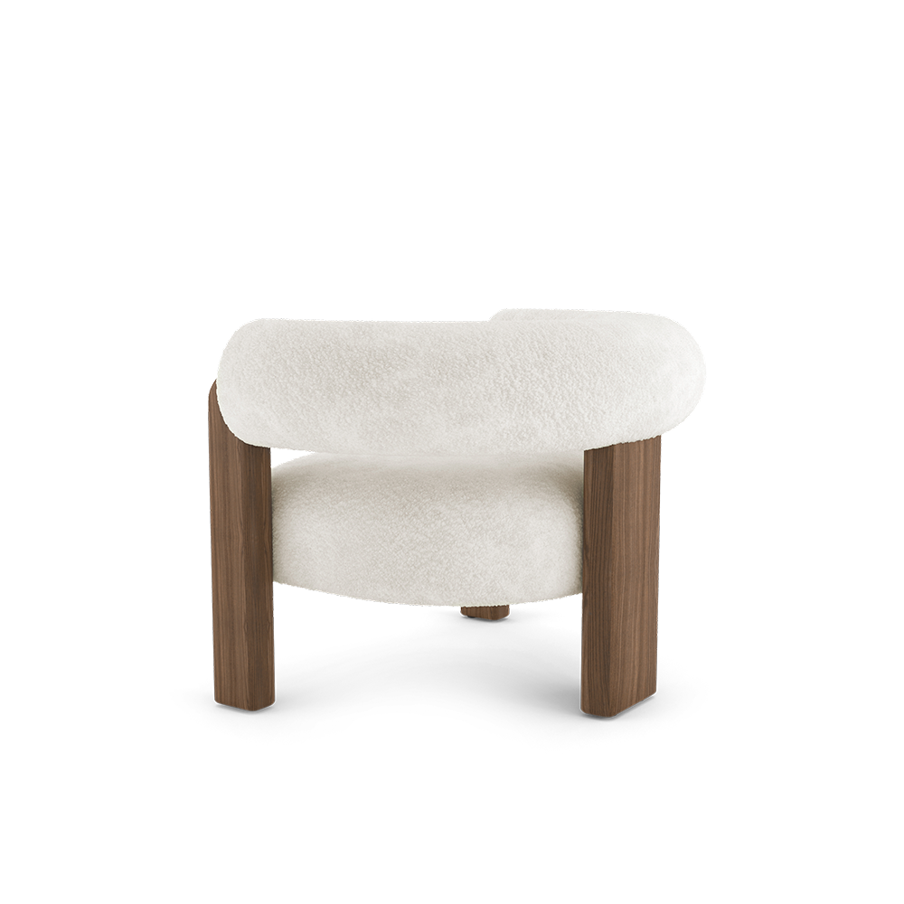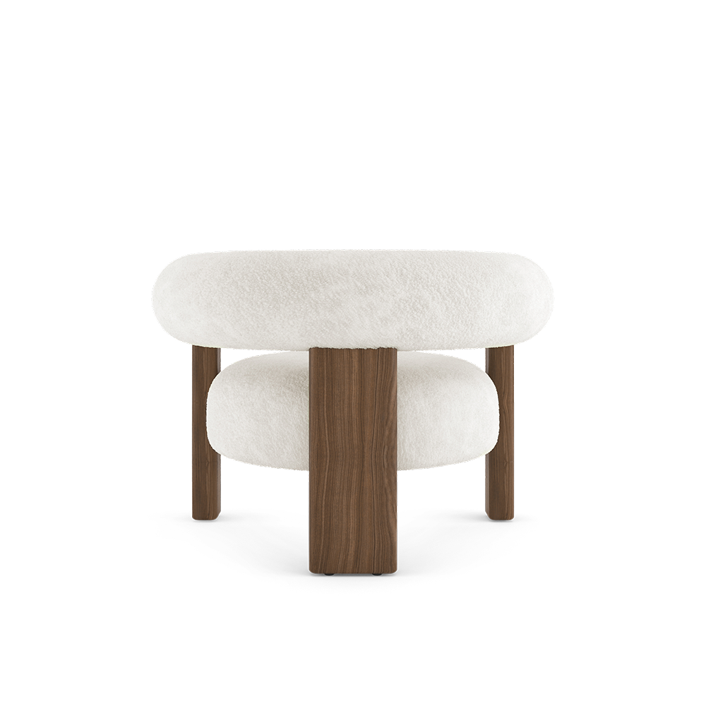 It draws inspiration from interiors filled with winter light, from long afternoons, from the quiet pleasure of spaces made for retreat. Lower, softer, more enveloping, it invites the body to let go while remaining anchored by the warmth and honesty of wood. There is something deeply elemental in its design. A grounded base. A generous seat. Curves that feel natural, almost inevitable, as if the piece had always existed in this form. It does not ask for attention, yet it changes the atmosphere around it—making space feel more intimate, more human, more still.
