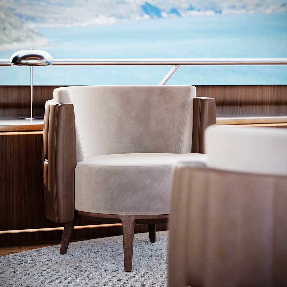 The Hook lounge zone is a social engine. The two sofas anchor the conversation island; the armchairs pivot between horizon-watching and intimate talk; the lounge chair opens like a quiet invitation to read, doze, or watch the water fracture the light. Distances are deliberate—enough space for movement, enough closeness for warmth. You understand, suddenly, that glamour here is not decoration; it’s clarity. Nothing is added that doesn’t serve comfort or calm. And yet, Hook photographs beautifully: slim shadows, sculptural silhouettes, and the kind of poise that makes a travel diary feel underdressed.