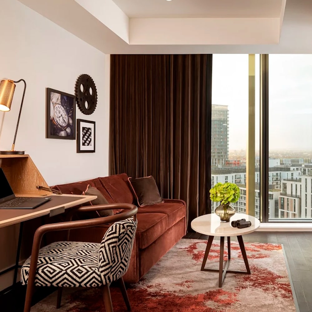 Located in vibrant Stratford, The Gantry offers a refined urban retreat surrounded by music, art, dining, and nightlife. Just steps from Westfield, Hackney Wick, and minutes from Stratford Station, the hotel blends stylish accommodation with lively social spaces, including three restaurants and lounges and a chic rooftop bar with sweeping views from 18 floors above the city.