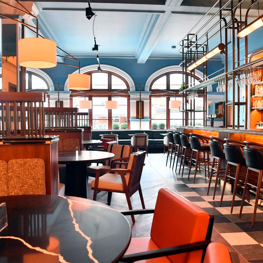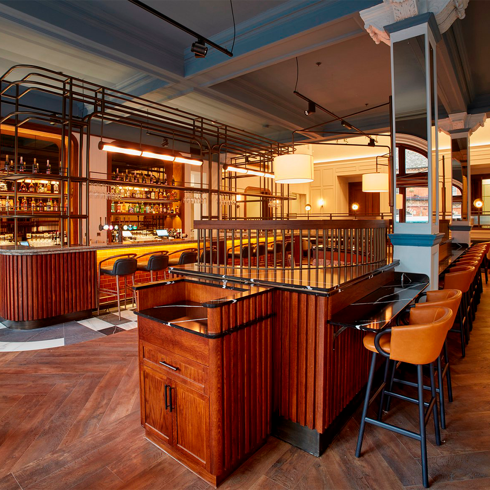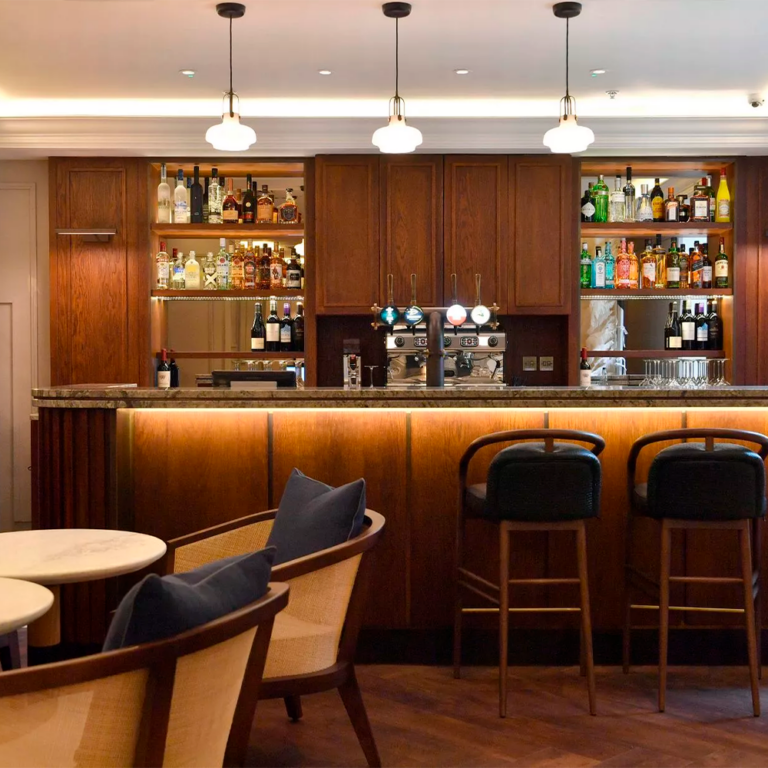 Enhancing the interiors, the Essex Armchair and the Essex Bar Stool, designed by Javier Gomez introduces a cosmopolitan character inspired by New York. Handcrafted in ash wood, finished in brown pewter, and upholstered in cotton velvet, the collection brings refined craftsmanship and contemporary elegance to Cardiff’s historic charm.