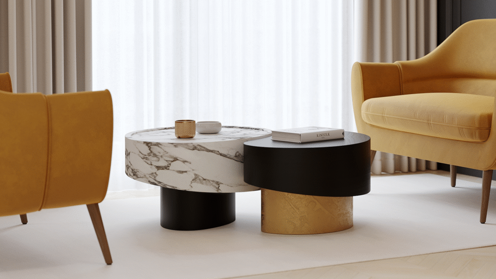 Meaning “soul” in Portuguese, Alma captures duality and unity in design. The interlocking coffee tables are crafted to work as modular pieces or standalones, offering flexibility for layered interior concepts. With organic contours and a minimalist details, Alma brings quiet beauty into modern living spaces.